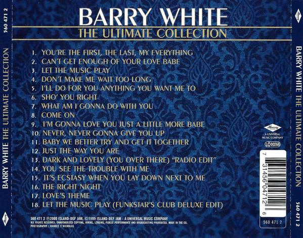 € 5.00 Media: Very Good Plus (VG+)Hoes: Very Good Plus (VG+)Barry White – The Ultimate Collection (CD, Comp, RP)