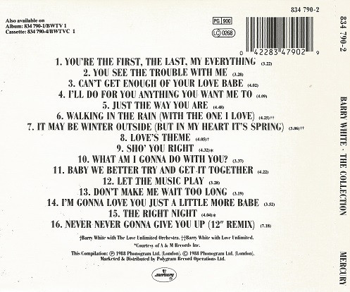 € 7.00 Media: Very Good (VG)Hoes: Very Good Plus (VG+)Barry White – The Collection (CD, Comp)