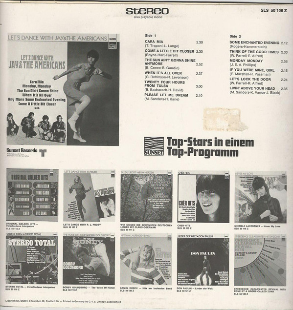 € 16.50 Media: Near Mint (NM or M-)Hoes: Very Good Plus (VG+)Jay & The Americans – Let’s Dance With Jay & The Americans (LP, Album, Comp)
