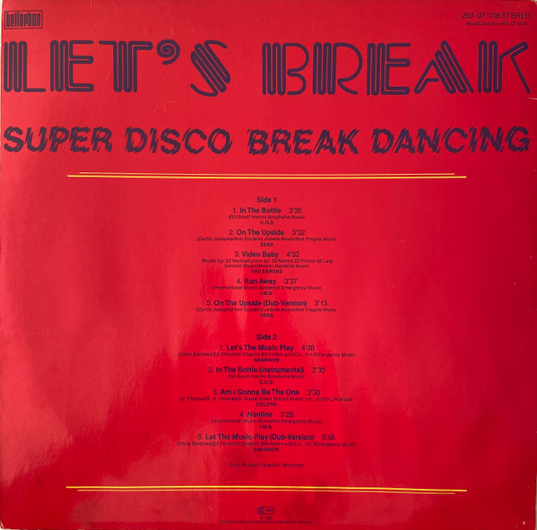 € 6.00 Media: Very Good (VG)Hoes: Very Good Plus (VG+)Various – Let’s Break – Super Disco Break-Dancing (LP, Comp)