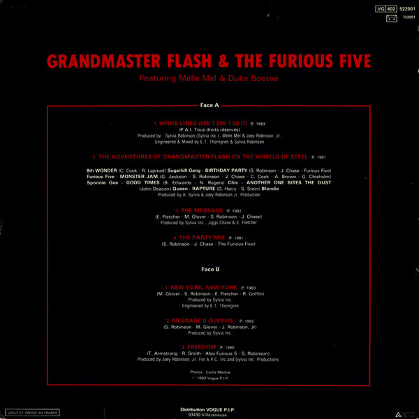 € 2.00 Media: Very Good Plus (VG+)Hoes: Good Plus (G+)Grandmaster Flash & The Furious Five Featuring Melle Mel & Duke Bootee – White Lines (Don’t Don’t Do It) (LP, Comp, M.P)