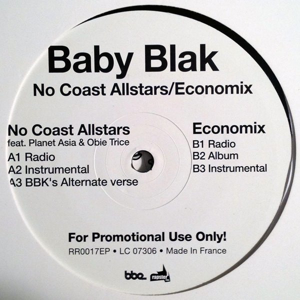 € 6.50 Media: Very Good Plus (VG+)Hoes: Very Good Plus (VG+)Baby Blak – No Coast Allstars / Economix (12″, Promo)