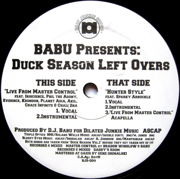 € 6.50 Media: Very Good Plus (VG+)Hoes: Very Good Plus (VG+)Babu – Presents: Duck Season Left Overs (12″)