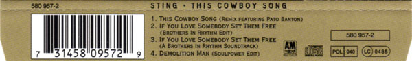 € 4.50 Media: Good Plus (G+)Hoes: Very Good (VG)Sting – This Cowboy Song (CD, Maxi)