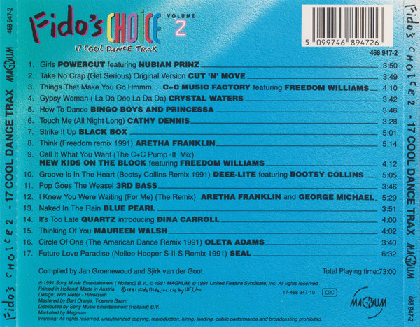 € 2.50 Media: Fair (F)Hoes: Very Good (VG)Various – Fido’s Choice Volume 2 (17 Cool Dance Trax) (CD, Comp)