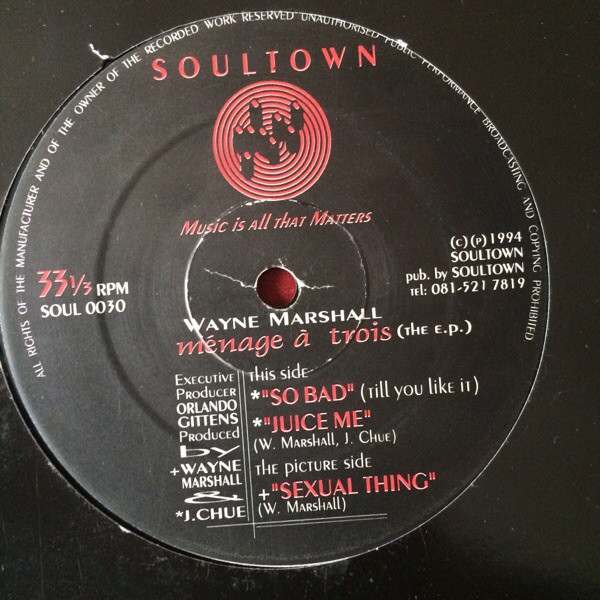 € 14.50 Media: Very Good Plus (VG+)Hoes: Very Good Plus (VG+)Wayne Marshall (3) – Menage A Trois (The E.P.) (12″)