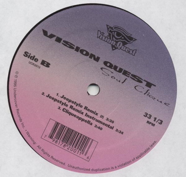 € 4.50 Media: Near Mint (NM or M-)Hoes: Very Good Plus (VG+)Vision Quest – Soul Clique / Jeepstyle (Remix) (12″)