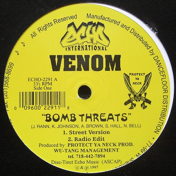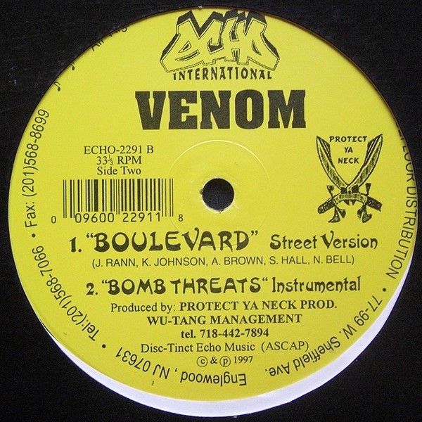 € 6.50 Media: Very Good (VG)Hoes: Very Good (VG)Venom* – Bomb Threats / The Boulevard (12″, Single, RP, 2nd)