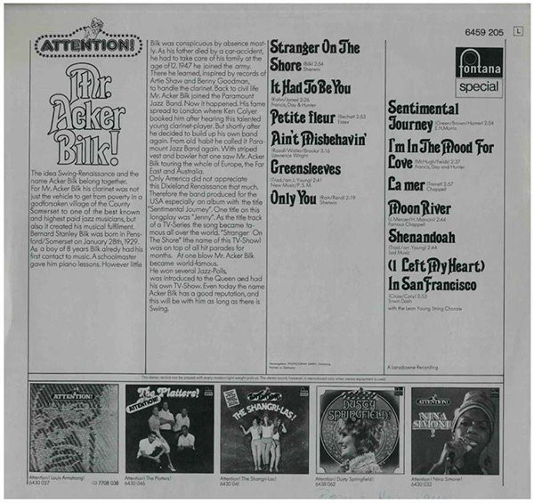 € 7.00 Media: Very Good Plus (VG+)Hoes: Very Good Plus (VG+)Acker Bilk – Attention! Mr. Acker Bilk! (LP, Comp)