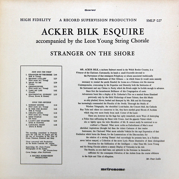 € 5.00 Media: Very Good (VG)Hoes: Very Good (VG)Acker Bilk & The Leon Young String Chorale – Stranger On The Shore (LP, Album, RE)