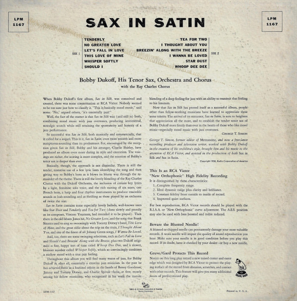 € 5.00 Media: Very Good Plus (VG+)Hoes: Very Good Plus (VG+)Bobby Dukoff And His Orchestra – Sax In Satin (LP, Album, Mono)