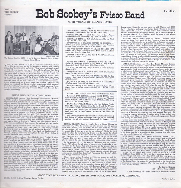 € 9.00 Media: Very Good (VG)Hoes: Mint (M)Bob Scobey’s Frisco Band With Vocals By Clancy Hayes – The Scobey Story, Vol. 2 (LP, Comp, Hol)
