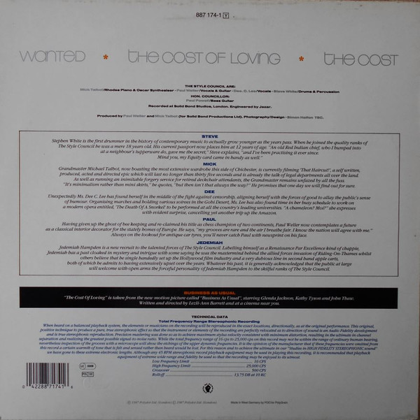 € 7.50 Media: Very Good Plus (VG+)Hoes: Very Good Plus (VG+)The Style Council – Wanted (Or Waiter, There’s Some Soup In My Flies.) (12″, Single)