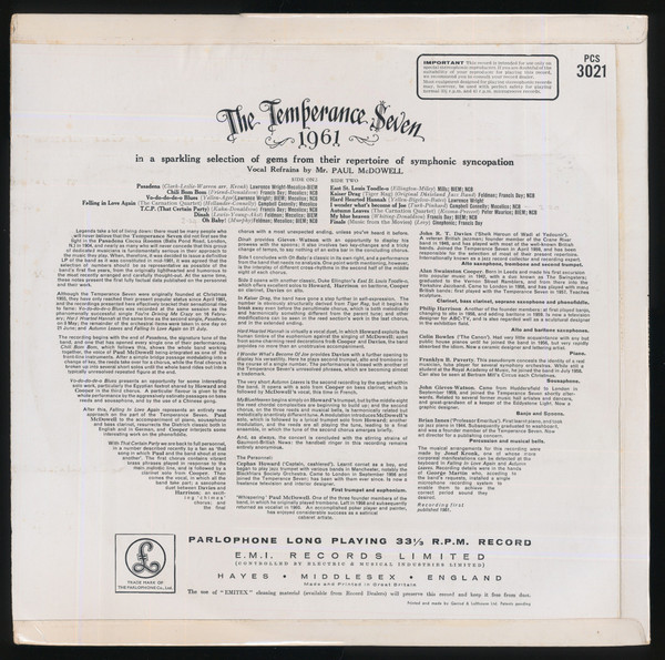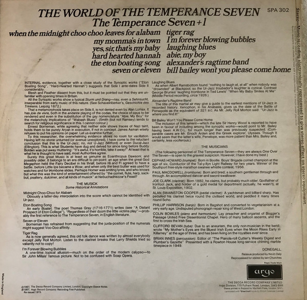 € 14.50 Media: Very Good Plus (VG+)Hoes: Very Good Plus (VG+)The Temperance Seven – Direct From The Ballspond Road Cocoa Rooms (LP, Comp)