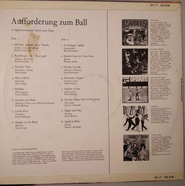 € 77.00 Media: Mint (M)Hoes: Very Good Plus (VG+)Various – Aufforderung Zum Ball (Zehn Spitzenorchester Bitten Zum Tanz) (LP, Comp)