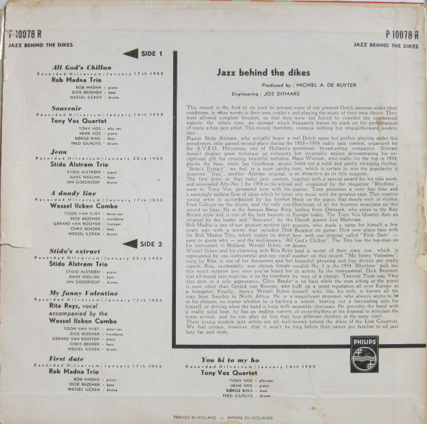 Various – Jazz Behind The Dikes (10″, Comp, Mono)