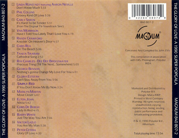 € 5.00 Media: Very Good (VG)Hoes: Very Good (VG)Various – The Glory Of Love (A 1990 Super Popgala) (CD, Comp)