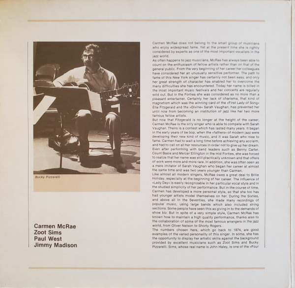 € 11.50 Media: Very Good Plus (VG+)Hoes: Very Good (VG)Carmen McRae, Zoot Sims, Paul West, Jimmy Madison – Carmen McRae Zoot Sims Paul West Jimmy Madison (LP, Album)