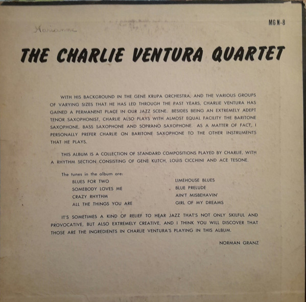 € 17.00 Media: Very Good (VG)Hoes: Very Good Plus (VG+)Charles Ventura Quartet – The Charlie Ventura Quartet (10″, Album)