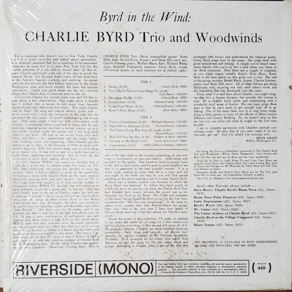 € 11.50 Media: Very Good (VG)Hoes: Very Good Plus (VG+)Charlie Byrd Trio And Members Of The National Symphony Winds – Byrd In The Wind (LP, Album, Mono, RE)