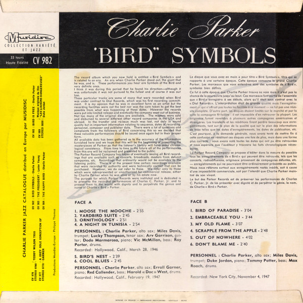 € 16.50 Media: Very Good Plus (VG+)Hoes: Very Good Plus (VG+)Charlie Parker – “Bird” Symbols (LP, Album, RE)