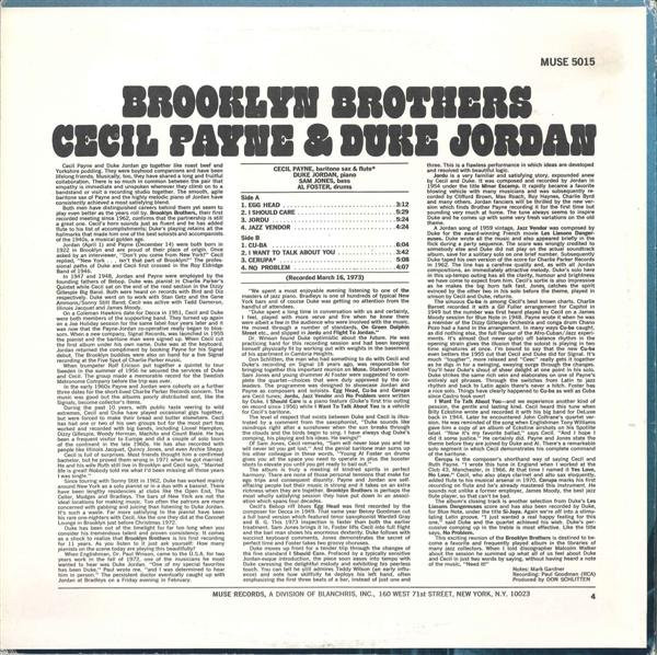€ 4.50 Media: Very Good (VG)Hoes: Very Good Plus (VG+)Cecil Payne & Duke Jordan – Brooklyn Brothers (LP, Album)