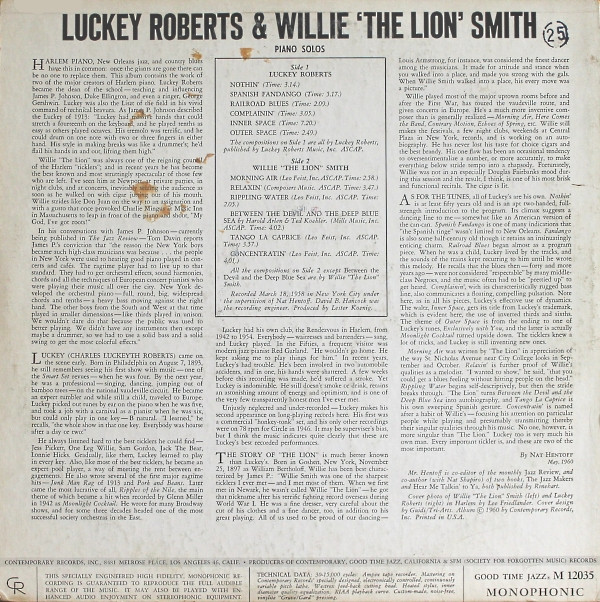 € 7.00 Media: Good (G)Hoes: Good Plus (G+)Charles “Luckey” Roberts & Willie “The Lion” Smith – Luckey & The Lion: Harlem Piano (LP, Album, Mono)