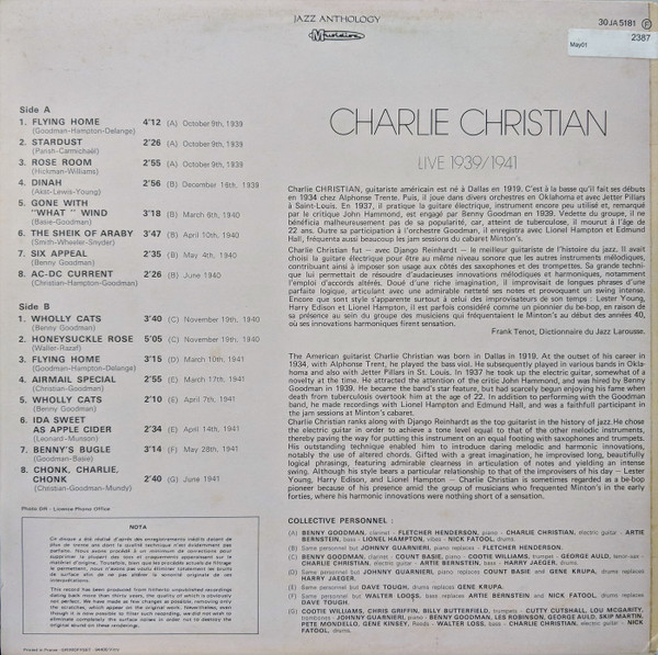 € 2.95 Media: Good Plus (G+)Hoes: Very Good (VG)Charlie Christian – Live 1939 / 1941 (LP, Comp)