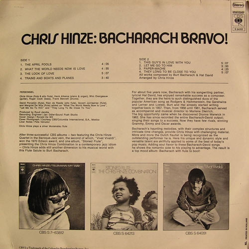 € 7.50 Media: Near Mint (NM or M-)Hoes: Near Mint (NM or M-)Chris Hinze – Bacharach Bravo! (LP, Album)