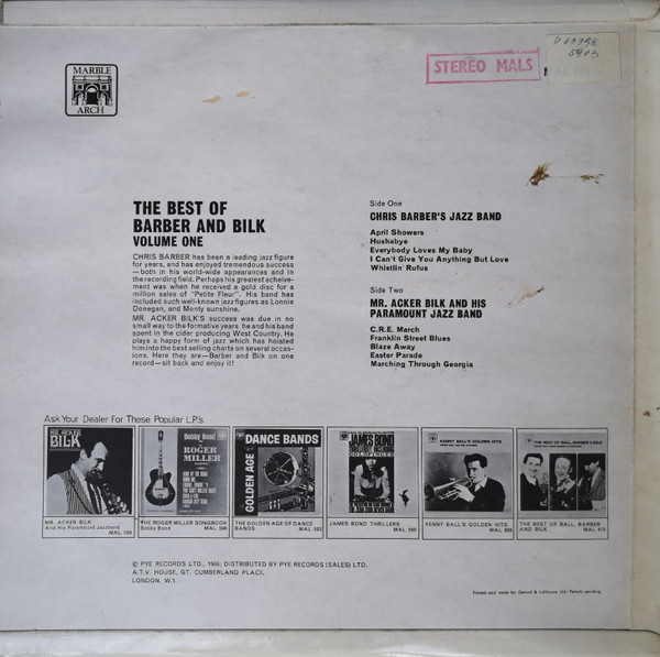 € 2.50 Media: Fair (F)Hoes: Good Plus (G+)Chris Barber And Acker Bilk – The Best Of Barber And Bilk (Volume One) (LP, Comp, Mono, RE)