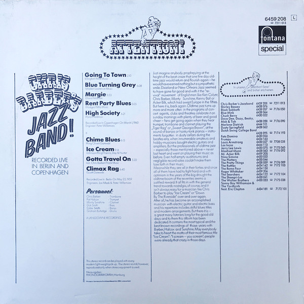 € 4.50 Media: Very Good (VG)Hoes: Very Good Plus (VG+)Chris Barber – Chris Barber In Berlin (LP, RP)