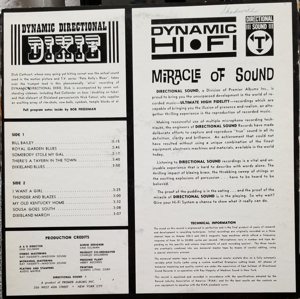 € 6.00 Media: Near Mint (NM or M-)Hoes: Very Good Plus (VG+)Dick Cathcart’s Dixielanders* – Dynamic Directional Dixie (LP, Mono, Gat)