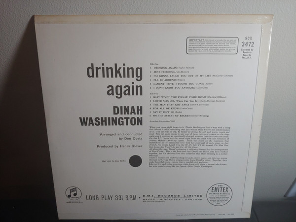 € 9.50 Media: Very Good Plus (VG+)Hoes: Very Good (VG)Dinah Washington – Drinking Again (LP, Album)