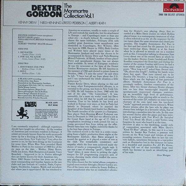 € 8.00 Media: Very Good Plus (VG+)Hoes: Very Good Plus (VG+)Dexter Gordon – The Monmartre Collection Vol. 1 (LP, Album)