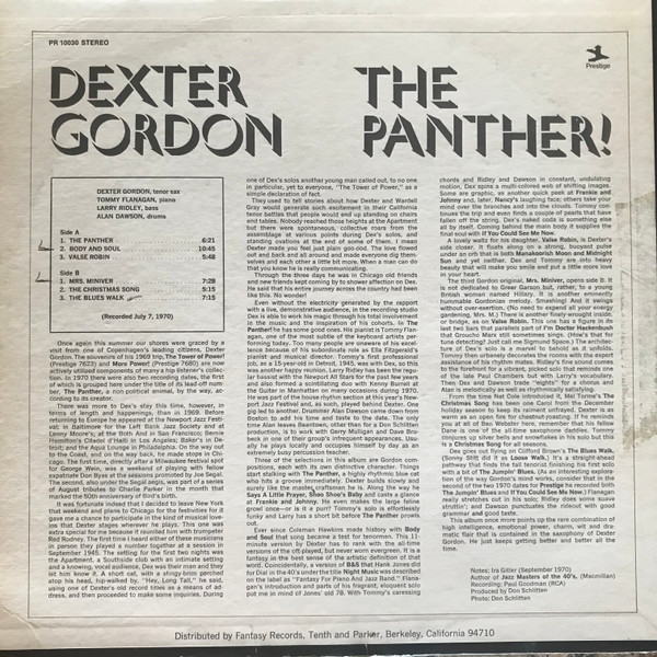 € 7.50 Media: Near Mint (NM or M-)Hoes: Very Good Plus (VG+)Dexter Gordon – The Panther! (LP, Album, RE)