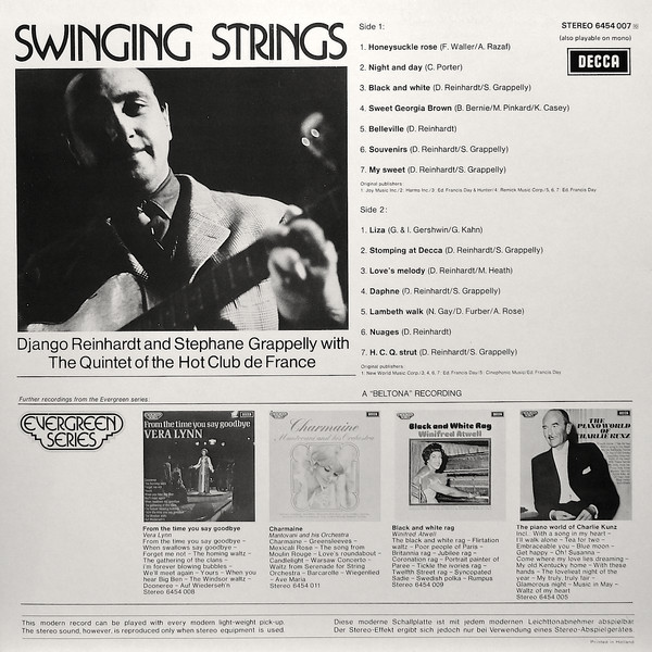 € 5.00 Media: Very Good (VG)Hoes: Very Good Plus (VG+)Django Reinhardt And Stephane Grappelly* With The Quintet Of The Hot Club Of France* – Swinging Strings (LP, Mono)