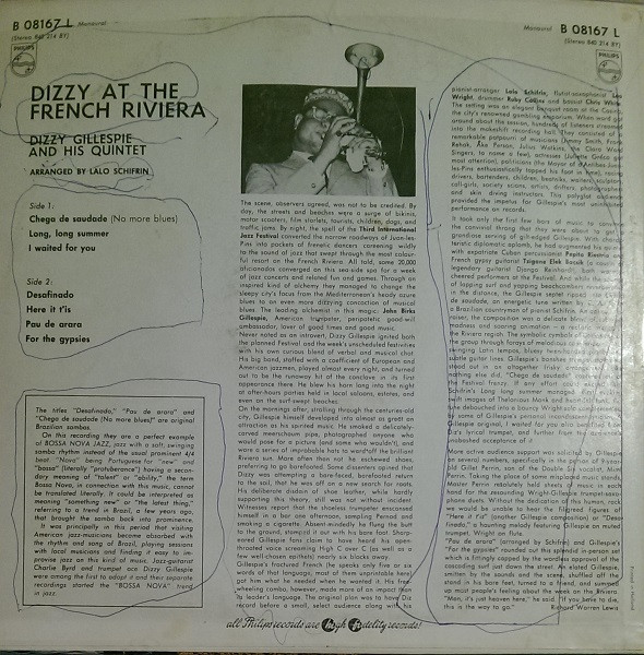 € 5.00 Media: Good Plus (G+)Hoes: Very Good (VG)Dizzy Gillespie – Dizzy At The French Riviera (LP, Mono)