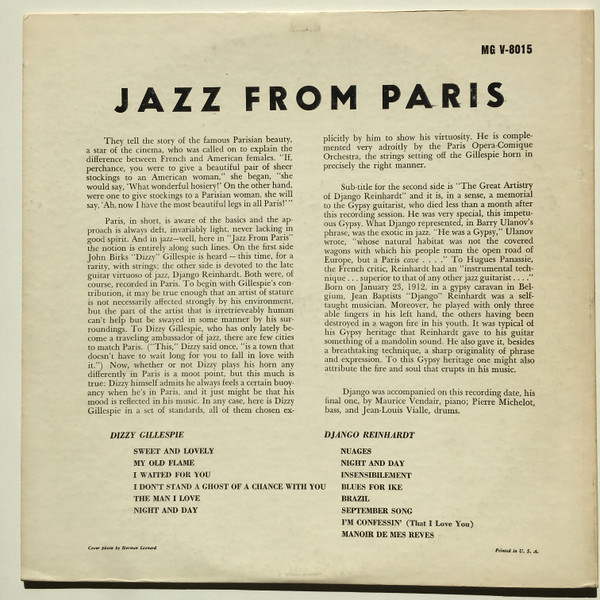 € 9.50 Media: Very Good Plus (VG+)Hoes: Very Good Plus (VG+)Dizzy Gillespie / Django Reinhardt – Jazz From Paris – Dizzy And Django (LP, Mono, RE)