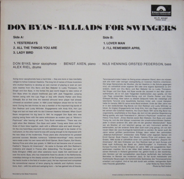 € 3.00 Media: Good (G)Hoes: Good Plus (G+)Don Byas – Ballads For Swingers (LP, Album, Mono)