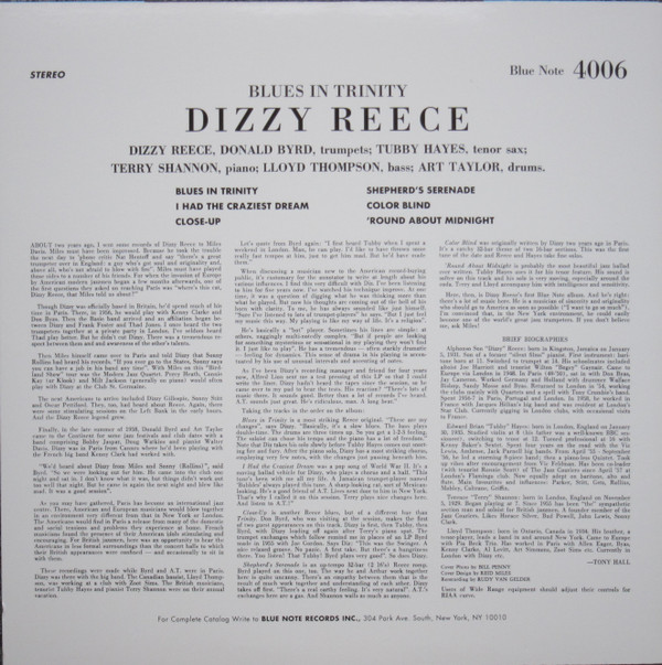 € 26.50 Media: Very Good Plus (VG+)Hoes: Very Good Plus (VG+)Dizzy Reece – Blues In Trinity (LP, RE, Sco)