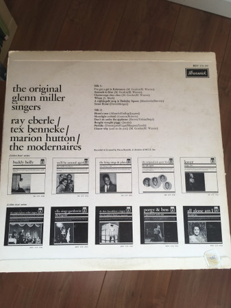 € 8.50 Media: Very Good Plus (VG+)Hoes: Very Good Plus (VG+)Glenn Miller, Ray Eberle, Tex Beneke, Marion Hutton, The Modernaires – The Original Glenn Miller Singers (LP, Comp)