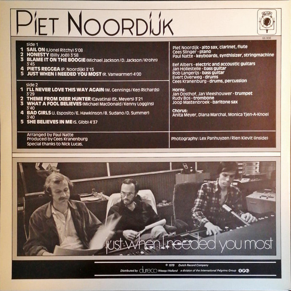 € 7.50 Media: Very Good Plus (VG+)Hoes: Very Good Plus (VG+)Piet Noordijk – Just when I needed you most (LP, Album, Gat)