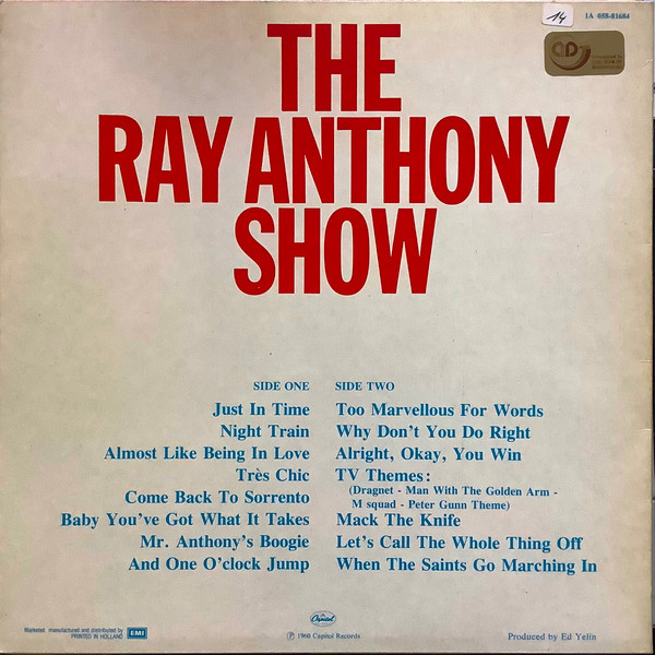 € 4.00 Media: Good Plus (G+)Hoes: Very Good Plus (VG+)Ray Anthony – The Ray Anthony Show (LP, Album, RE)