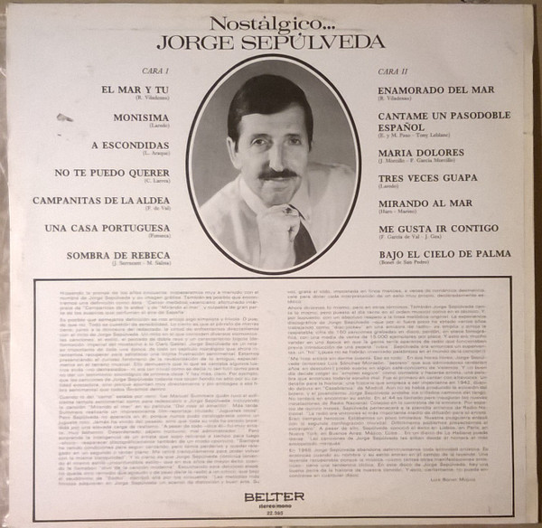 € 11.50 Media: Near Mint (NM or M-)Hoes: Very Good Plus (VG+)Jorge Sepúlveda – Nostálgico… (LP, Album)