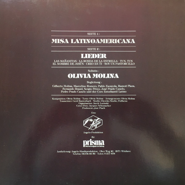 € 7.00 Media: Near Mint (NM or M-)Hoes: Very Good Plus (VG+)Olivia Molina – Misa Latino Americana (LP)