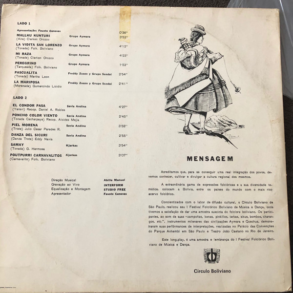€ 7.00 Media: Very Good Plus (VG+)Hoes: Very Good (VG)Various – Círculo Boliviano De São Paulo Apresenta 1º Festival Folclórico Boliviano De Música E Dança (LP)