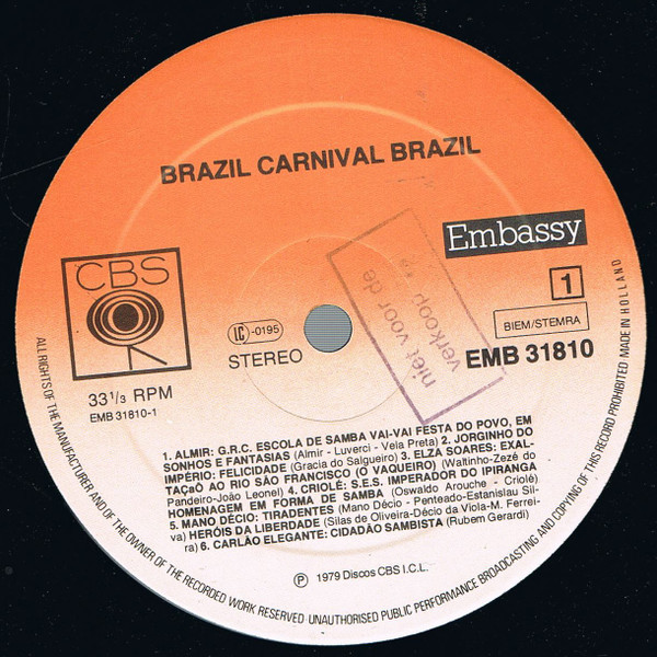 € 7.00 Media: Very Good Plus (VG+)Hoes: Very Good Plus (VG+)Various – Brazil Carnival Brazil (LP, Comp)