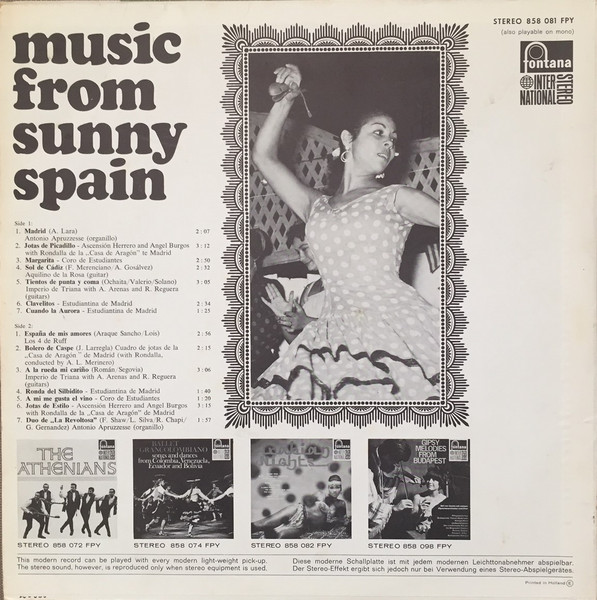 € 10.00 Media: Very Good Plus (VG+)Hoes: Very Good Plus (VG+)Various – Music From Sunny Spain (LP, Comp)
