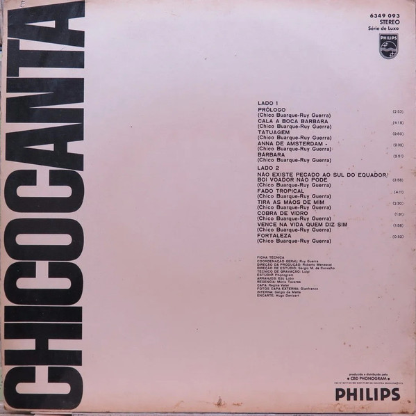€ 7.50 Media: Very Good Plus (VG+)Hoes: Near Mint (NM or M-)Chico Buarque – Chico Canta (LP, Album, RE)
