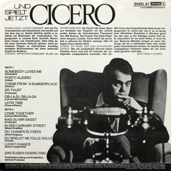 € 8.50 Media: Very Good Plus (VG+)Hoes: Very Good Plus (VG+)Cicero* – Und Jetzt Spielt Cicero (LP, Album, Blu)